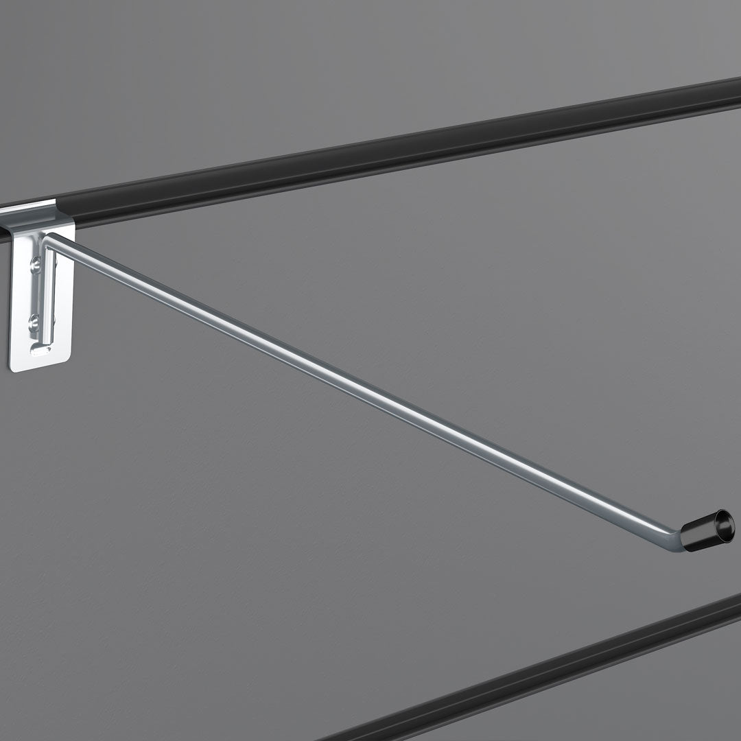 It is mostly suitable for slatwall panels, and it is ideal for long-term usage. It has a variety of lengths and wire diameters to give retailers different options in creating an effective display of products in their shops.