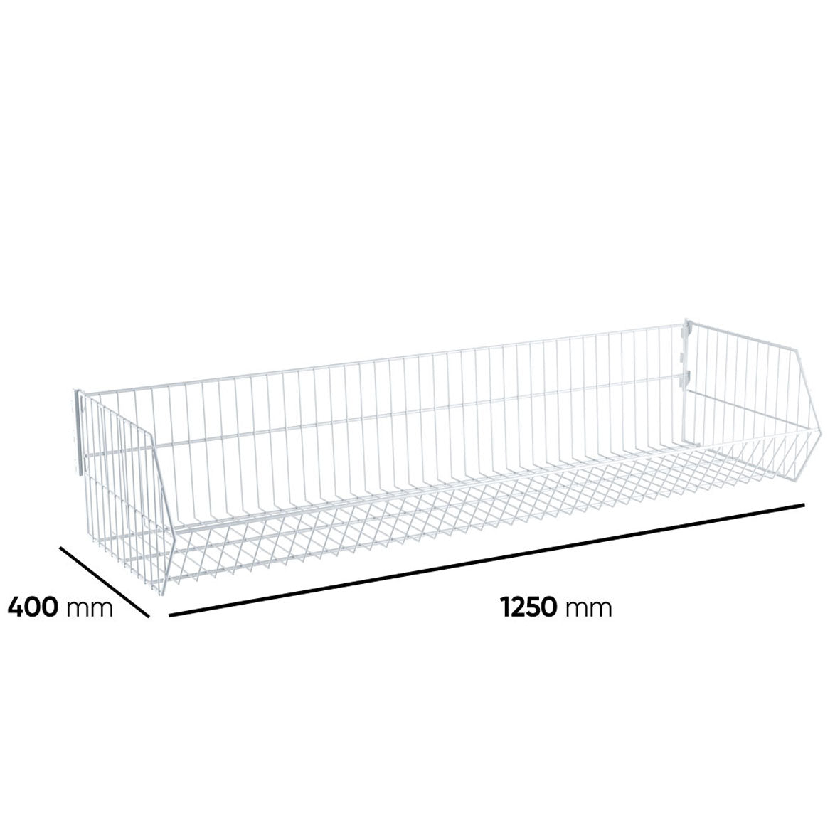 Wire Basket for Shop Shelving (1250 mm) Product Description Our shelving units can easily connect to your already existing shelving units, be it a wall unit or a gondola unit....